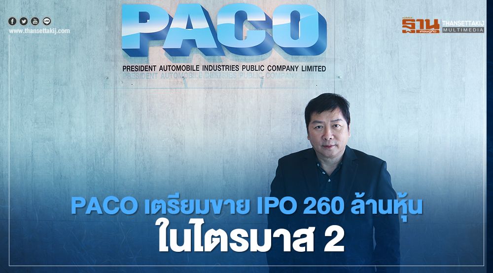 นายวรนันท์ ถาวรนันท์ กรรมการผู้จัดการ บริษัทหลักทรัพย์ คิงส์ฟอร์ด จำกัด(มหาชน)ในฐานะที่ปรึกษาทางการเงินของ บริษัท เพรสซิเด้นท์ ออโตโมบิล อินดัสทรีส์ จำกัด (มหาชน) หรือ PACO เปิดเผยว่า สำนักงานคณะกรรมการกำกับและตลาดหลักทรัพย์ (ก.ล.ต.) ได้นับหนึ่งแบบไฟลิ่ง PACO แล้ว ในวันที่ 4 กุมภาพันธ์ 2564 เพื่อเสนอขายหุ้นสามัญเพิ่มทุนให้แก่ประชาชนเป็นครั้งแรก(IPO) 260 ล้านหุ้น มูลค่าที่ตราไว้(พาร์)หุ้นละ 0.50 บาท หรือ 26% ของทุนจดทะเบียนหลัง IPO ช่วงต้นไตรมาส 2 ปีนี้