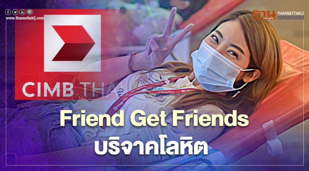 ธนาคาร ซีไอเอ็มบี ไทย พร้อมทีมงานกิจกรรมเพื่อสังคม (CSR) เชิญชวนเพื่อนพนักงานธนาคารและบริษัทในเครือ ร่วมกันบริจาคโลหิตต่อชีวิต ให้เพื่อนมนุษย์ ด้วยแคมเปญ “Friend Get Friends เพื่อนชวนเพื่อน ให้โลหิต ได้ช่วยชีวิต ได้สุขภาพแข็งแรง”