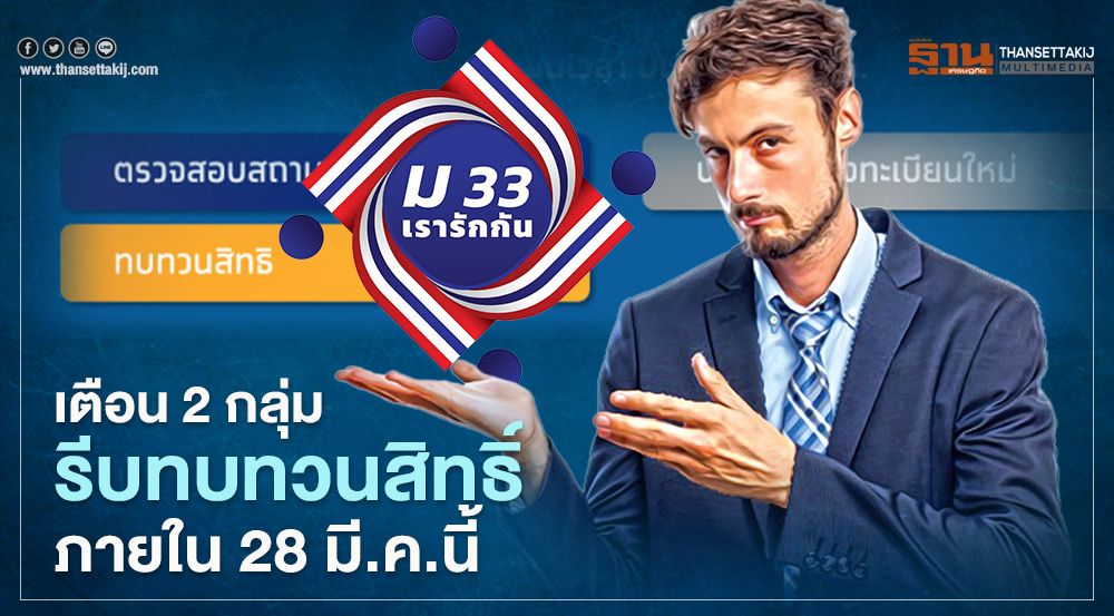 กลุ่มแรก คือ ผู้ยังไม่ได้ลงทะเบียนมาก่อนกับผู้ที่ได้รับ SMS จากธนาคารกรุงไทยว่า ชื่อ นามสกุลผิด ให้ทบทวนสิทธิผ่านทางเว็บไซต์ www.ม33เรารักกัน.com โดยผู้ประกันตน ต้องกดเข้าไปที่เมนู“ทบทวนสิทธิ” (ปุ่มสีเหลือง) จากนั้นกรอกข้อมูลส่วนบุคคลให้ละเอียดชัดเจน เช่น ชื่อสกุล เลขบัตรประจำตัวประชาชน และรหัสหลังบัตร วันเดือนปีเกิด จังหวัดที่พักอาศัย เบอร์โทรศัพท์ แล้วคลิ๊กปุ่ม “ขอทบทวนสิทธิ”