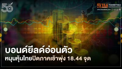 บอนด์ยีลด์อ่อนตัวลง หนุนหุ้นไทยปิดภาคเช้าพุ่ง 18.44 จุด