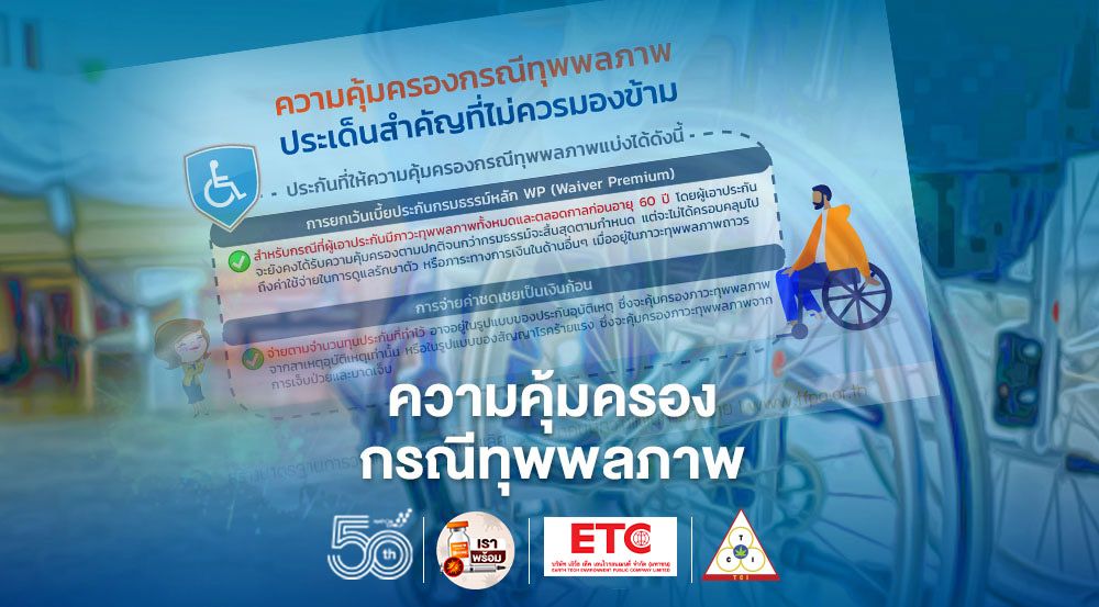 เชื่อว่าไม่มีใครอยากประสบกับภาวะเหล่านี้ โดยเฉพาะบุคคลในวัยทำงาน ซึ่งเป็นผู้หารายได้หลักและรับผิดชอบค่าใช้จ่ายส่วนใหญ่ของครอบครัว เราอาจป้องกันความเสี่ยงเบื้องต้นได้ด้วยการดูแลสุขภาพร่างกาย ควบคุมอาหารการกิน และออกกำลังกายสม่ำเสมอ แต่อาจไม่สามารถปิดความเสี่ยงที่มีทั้งหมดได้ เช่นเดียวกับการเจ็บป่วยทั่วไป แม้จะดูแลสุขภาพดีเพียงใด ก็มีโอกาสเจ็บป่วยได้ เมื่อเป็นเช่นนี้ จึงอาจเลือกโอนย้ายความเสี่ยงให้กับบริษัทประกัน โดยทำประกันให้ครอบคลุมกรณีทุพพลภาพไว้ด้วย