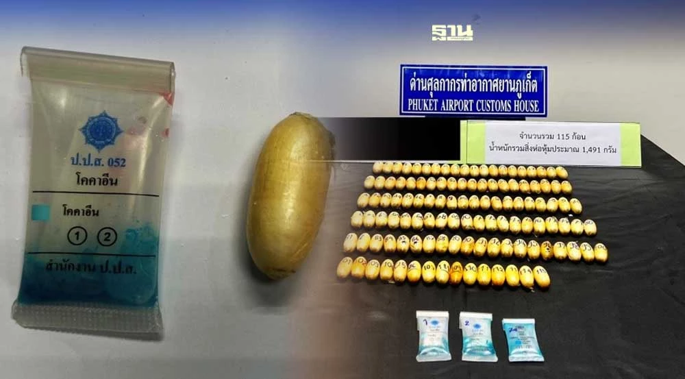 ผลการตรวจสอบสิ่งแปลกปลอมดังกล่าว พบเป็นยาเสพติดให้โทษประเภท 2 โคคาอีน จำนวนรวม 115 ก้อน น้ำหนักรวมสิ่งห่อหุ้ม 1.49 กิโลกรัม มูลค่า 4.47 ล้านบาท เป็นความผิดตามมาตรา 242 มาตรา 252 ประกอบมาตรา 166 และมาตรา 167 แห่งพระราชบัญญัติศุลกากร พ.ศ. 2560 ทั้งนี้ ด่านศุลกากรท่าอากาศยานภูเก็ต ได้นำผู้ต้องหาพร้อมของกลางส่งพนักงานสอบสวน สถานีตำรวจภูธรสาคู เพื่อดำเนินคดีตามกฎหมายต่อไป