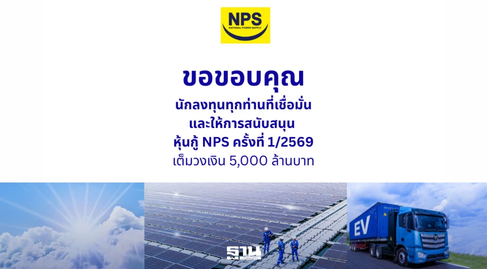 บริษัท เนชั่นแนล เพาเวอร์ ซัพพลาย จำกัด (มหาชน) หรือ “NPS” ประสบความสำเร็จอย่างสูงในการออกหุ้นกู้ ครั้งที่ 1/2569 จำนวน 5,000 ล้านบาท ประกอบด้วยหุ้นกู้ทั้งหมด 4 ชุด แบ่งเป็น
