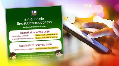 ธ.ก.ส.แจ้งปิดปรับปรุงระบบ หยุดให้บริการธุรกรรมทุกช่องทาง 27-28 พ.ค.นี้ เพิ่มประสิทธิภาพการให้บริการ เช็คช่วงเวลาหยุดให้บริการได้ที่นี่