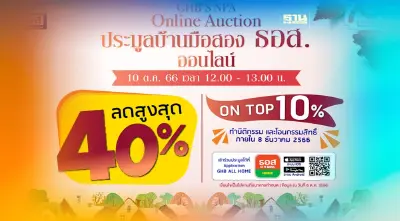 ธอส. จัดงาน 10.10 GHB’S NPA Online Auction 10 ต.ค. 66 นี้ ขนทรัพย์เด่นกว่า 1,000 รายการทั่วประเทศ เปิดประมูลบ้านมือสองออนไลน์ พร้อมส่วนลดสูงสุดถึง 40% และ On Top อีก 10%