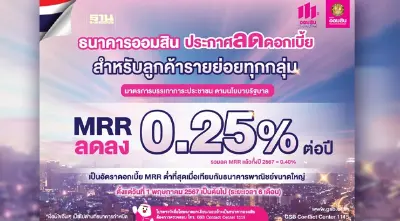 ออมสิน ประกาศลดดอกเบี้ย MRR ลง 0.25% ขานรับนโยบายรัฐบาล