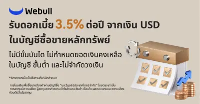 ล่าสุด บริษัทหลักทรัพย์ (บล.) วีบูลล์ (ประเทศไทย) จำกัด หรือ Webull เอาใจนักลงทุน: “โดยให้ดอกเบี้ยเงิน USD ในบัญชีซื้อขายหลักทรัพย์ 3.5% ต่อปี ซึ่งเป็นบัญชีเงินฝากสกุลต่างประเทศดอลล่าร์สหรัฐ ที่ใช้เทรดหุ้น ETF และ Option โดยไม่มีการกำหนดเงินขั้นต่ำคงเหลือในบัญชีซื้อขายหลักทรัพย์