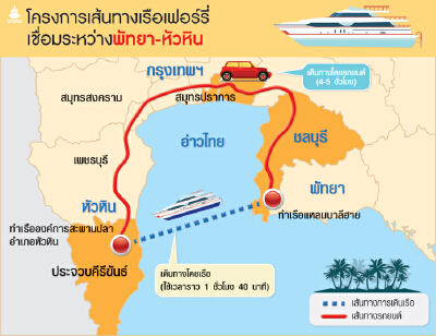 ธุรกิจท่องเที่ยวหัวหิน-พัทยา ขานรับเปิดบริการเรือเฟอร์รี่ข้ามฟากตะวันออก-ตะวันตก แจงเป็นทางเลือกใหม่ให้นักท่องเที่ยวได้เปลี่ยนบรรยากาศ แต่ขอความชัดเจนก่อนโปรโมตตลาด ด้านอธิบดีกรมเจ้าท่า เผยจะเริ่มบริการต้นปี 60 ดีเดย์ 2 เที่ยวต่อวัน เคาะราคาเบื้องต้น 1,200 บาท