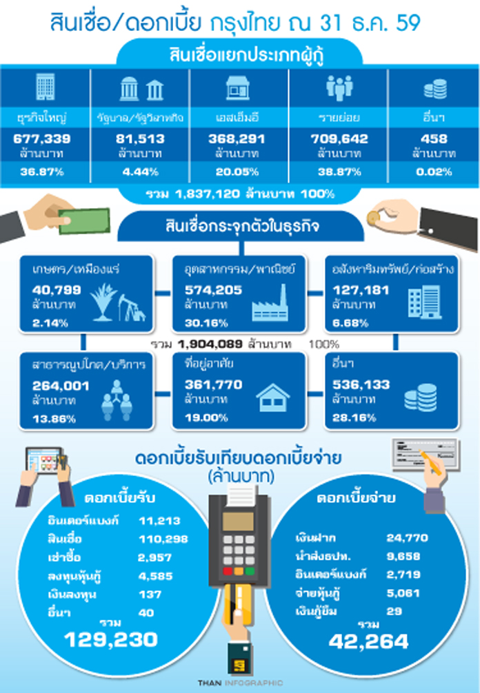 ด้านนายลือชัย ชัยปริญญา ผู้ช่วยกรรมการผู้จัดการใหญ่อาวุโส ผู้บริหารสายงาน สายงานกลยุทธ์และผลิตภัณฑ์รายย่อยธนาคารกรุงไทย กล่าวว่า ภาพรวมธุรกิจรายย่อยปีนี้ ธนาคารจะเน้นเดินตามภูมิภาคที่ภาครัฐมากขึ้น เช่น สินเชื่อบ้าน จะเน้นกลุ่มที่มีความต้องการที่อยู่อาศัยจริง
