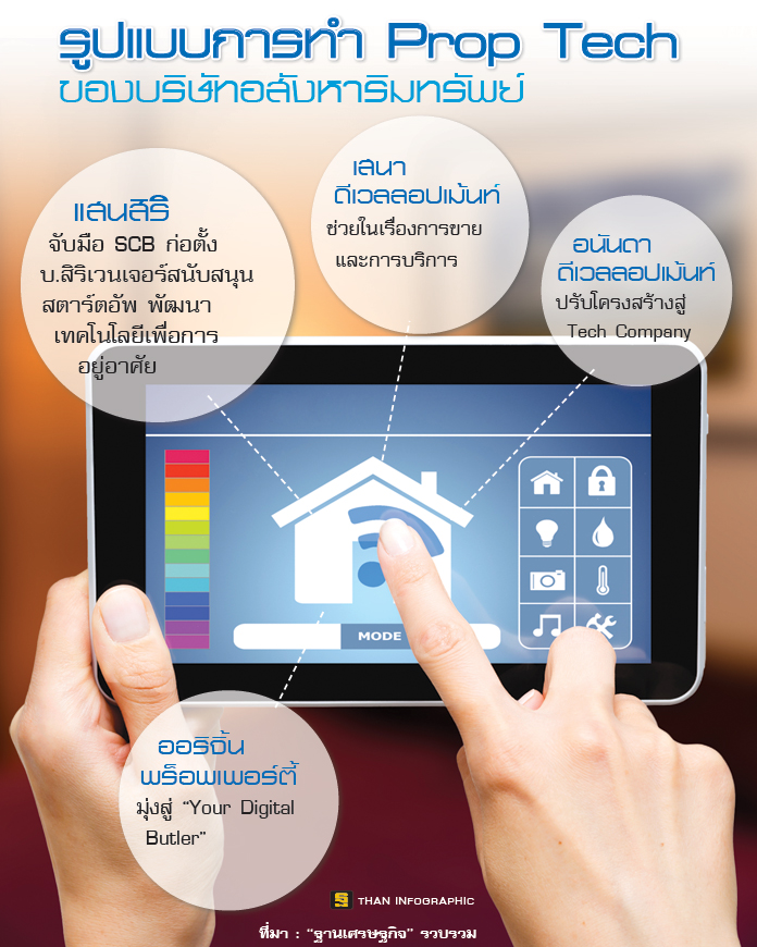 การเติบโตของเทคโนโลยี ช่วยให้ผู้บริโภคเข้าถึงแหล่งข้อมูลได้อย่างรวดเร็ว ด้วยเหตุนี้บริษัทอสังหาริมทรัพย์จึงนำช่องทางนี้มาพัฒนาต่อยอดธุรกิจ ผ่านกลยุทธ์ “Property Tecnology” ด้วยการนำเอาเทคโนโลยีและนวัตกรรมมาพัฒนาการอยู่อาศัย ตั้งแต่กระบวนการก่อสร้างไปจนถึงบริการหลังการขาย