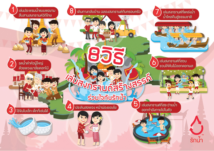 สำหรับปีนี้ กลุ่มธุรกิจโคคา-โคลา ได้นำโครงการ "รักน้ำ" มาเป็นส่วนหนึ่งของการร่วมฉลองสงกรานต์ โดยชวนคนไทยฉลองสงกรานต์แบบ "รักน้ำ" ด้วยการเล่นน้ำสงกรานต์ในปริมาณที่พอเหมาะและใช้เวลาอยู่กับครอบครัวในโอกาสที่สมาชิกจะได้อยู่พร้อมหน้า โดยสร้างการรับรู้ และร่วมกระตุ้นจิตสำนึก ผ่านสื่อวิดีโอ และอินโฟกราฟฟิค ปล่อยทาง YouTube ของโคคา-โคลา ประเทศไทย Facebook และเว็บไซต์ต่างๆ เพื่อส่งเสริมให้คนไทยร่วมกันฉลองสงกรานต์อย่างตระหนักรู้ถึงคุณค่าทรัพยากรน้ำ โดยผู้บริโภคสามารถร่วมบอก "รักน้ำ" หรือแชร์ไอเดียการเล่นสงกรานต์อย่างสร้างสรรค์ผ่านแฮชแท็ก #RAKNAM #รักน้ำ #Coke