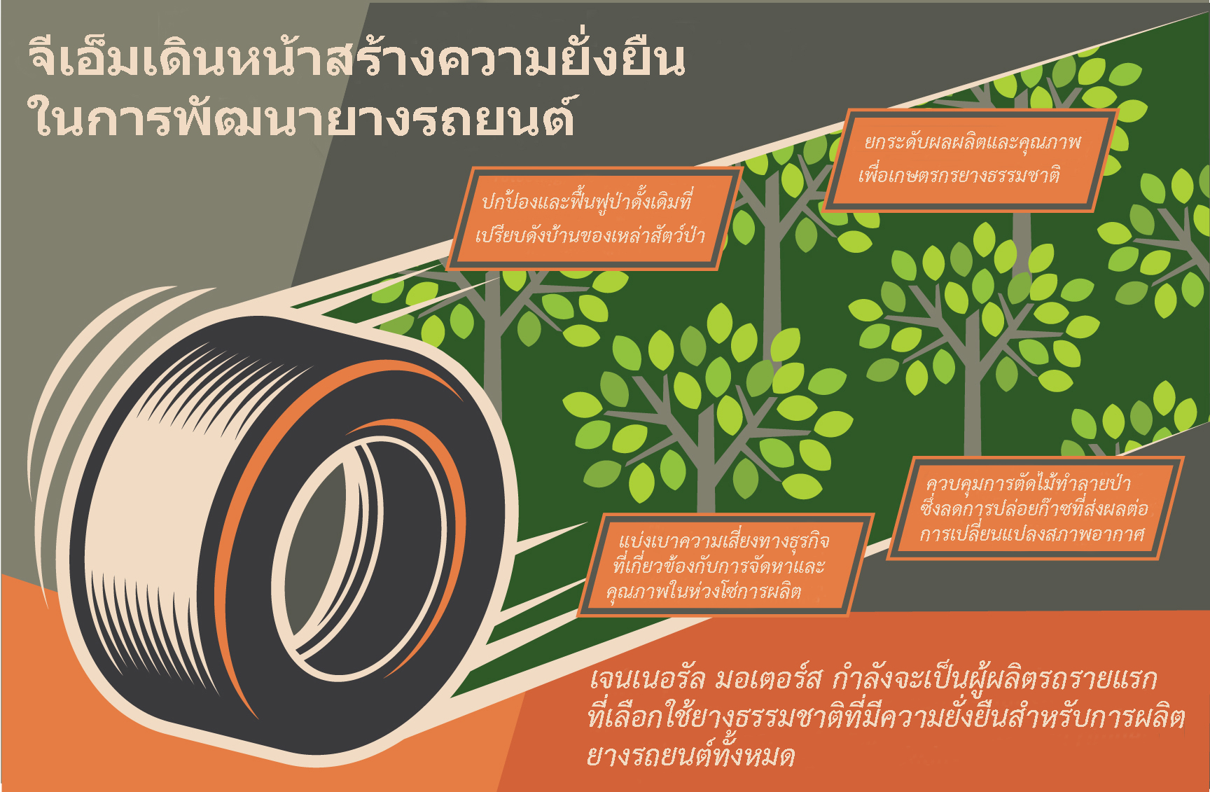 จีเอ็มเชื่อมั่นว่าการจัดหายางรถยนต์ที่ผลิตจากยางธรรมชาติที่มีความยั่งยืนจะให้ประโยชน์มากมายแก่ชุมชน ธุรกิจ และสิ่งแวดล้อม อาทิ