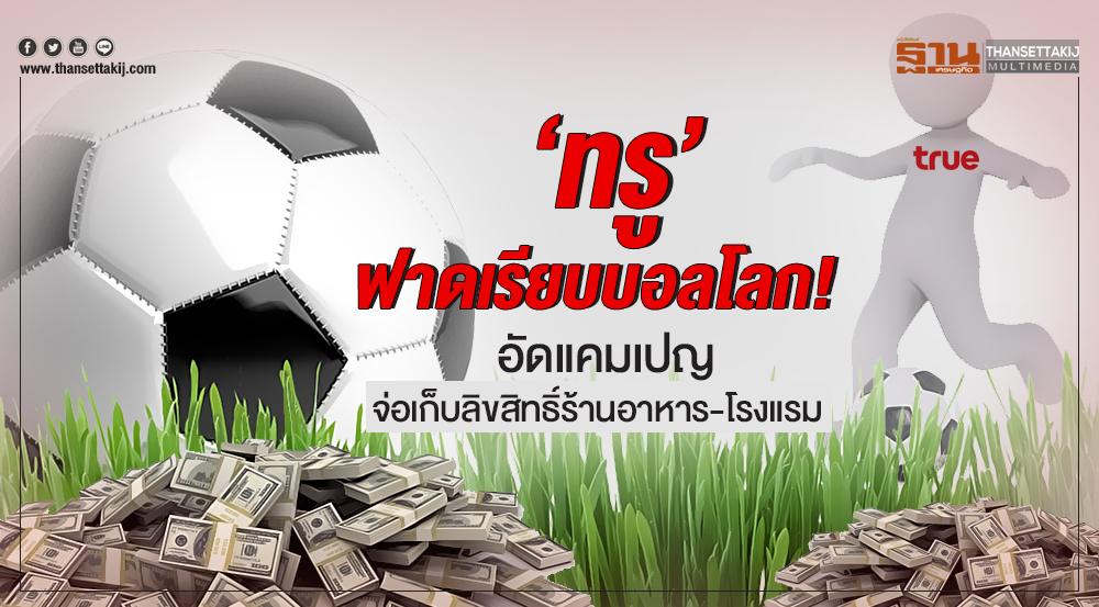 'กลุ่มทรู' กินรวบบอลโลก! กวาดรายได้ทุกแพลตฟอร์ม ทั้งมือถือ ออนไลน์ แอพพลิเคชัน พร้อมขายกล่อง 4K ครั้งแรกในอาเซียน ... ร้านอาหาร โรงแรม ร้านค้าเชิงพาณิชย์ต้องจ่ายค่าใบรับรอง ก่อนเข้าข่ายละเมิดลิขสิทธิ์ ผิดกฎหมาย