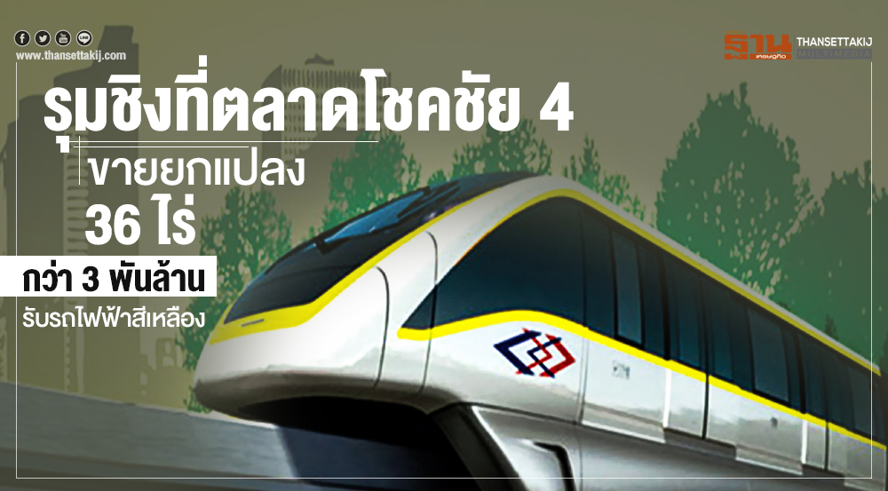 ทุนใหญ่อสังหาฯ จ้องทำเลทองตลาดโชคชัย 4 ขึ้นคอนโดมิเนียม รับรถไฟฟ้าสายสีเหลือง เจ้าของที่บอกขายยกแปลง 36 ไร่ มูลค่ากว่า 3,000 ล้านบาท ... กทม. เร่งปรับผังเมืองจากสีเหลืองเป็นสีส้ม ขึ้นตึกสูงไม่จำกัด