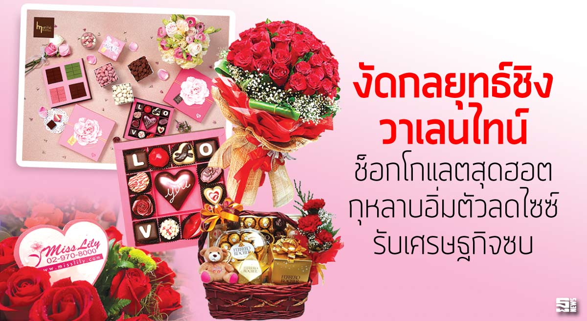 ธุรกิจคึกคักรับวาเลนไทน์ “มิสลิลลี่” เพิ่มไลน์สินค้าช็อกโกแลตและตระกร้าของขวัญ พลิกเกมลดไซซ์ขายดอกกุหลาบช่อเล็กรับกำลังซื้อลดส่วนช่อยักษ์ตั้งราคา 3 หมื่นบาท สำหรับลูกค้ากระเป๋าหนัก โอดราคากุหลาบนำเข้าพุ่ง 30-40%ด้าน “เมลท มี” มั่นใจ ตลาดช็อกโกแลตยังโตสูงสุดในวันแห่งความรัก พร้อมเปิดแคมเปญกระตุ้นยอด ฟาก “เซนต์ เจมส์” ออกกระเป๋าลายกุหลาบรับคู่สวีต