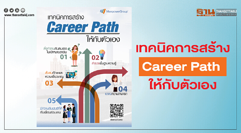 ในเส้นทางอาชีพ ... ได้กำหนดและตั้งเป้าหมายของตัวเอง ... เมื่อเข้าสู่วัยทำงาน การก้าวไปให้ถึงเป้าหมายที่ตัวเองกำหนดไว้ มีแนวทางในการเจริญเติบโตในสายงานที่ตัวเองเลือกนั้น "ต้องทำอย่างไร?" แล้วสิ่งที่เราเลือกที่จะทำ "เราเองสามารถกำหนดและออกแบบเส้นทางการทำงานของเราได้หรือไม่?" คงเป็นคำถามที่หลาย ๆ คน ถามตัวเองอยู่บ่อยครั้ง แต่ก็ยากสำหรับการหาคำตอบ "แมนพาวเวอร์กรุ๊ป" ได้แนะนำเทคนิคการสร้าง "Career Path" ในการออกแบบเส้นทางอาชีพสู่ความสำเร็จมาแนะนำ