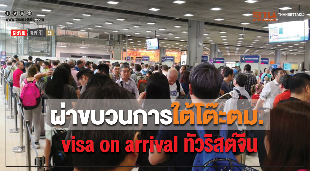 ที่ผ่านมา นักท่องเที่ยวจีนเข้าไทยในช่วง 5 ปีที่ผ่านมา เพิ่มขึ้นก้าวกระโดดปีละ 29% ล่าสุด อยู่ที่ 10 ล้านคนต่อปี และจีนเป็น 1 ใน 20 ประเทศ และ 1 เขตเศรษฐกิจพิเศษ (ไต้หวัน) ที่สามารถมาทำ Visa on Arrival ซึ่งเป็นอีกทางเลือกหนึ่งในการทำวีซ่าเข้าไทย หากไม่ได้ทำวีซ่านักท่องเที่ยวมาจากประเทศต้นทาง ซึ่งจากการเติบโตของการท่องเที่ยวไทย ส่งผลให้สถิติการขอ Visa on Arrival จากนักท่องเที่ยวกว่า 20 ชาตินี้ มีอัตราการเพิ่มขึ้นต่อเนื่อง โดยจาก ม.ค. - ส.ค. 2561 อยู่ที่ 3.85 ล้านคน เพิ่มขึ้น 15.67% หากเทียบกับช่วงเดียวกันของปีก่อน