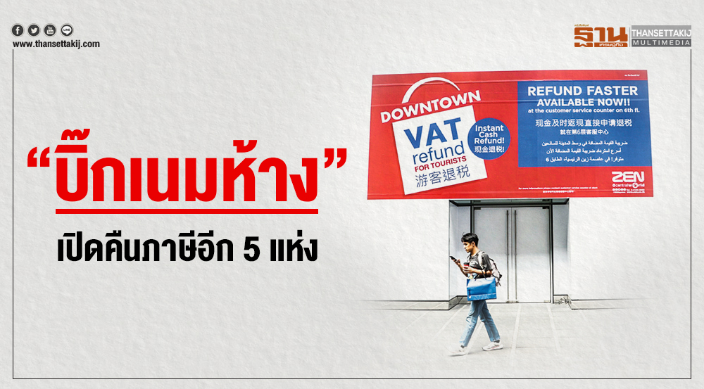 หลังจากที่ผู้บริหาร บริษัท แวต รีฟันด์ เซ็นเตอร์ (ไทยแลนด์) จำกัด เข้ายื่นใบสมัครเป็นตัวแทนคืนภาษีมูลค่าเพิ่มให้แก่นักท่องเที่ยวต่างชาติในเมือง (Downtown Vat Refund For Tourist) ต่อกรมสรรพากร เมื่อวันที่ 26 พ.ย. ที่ผ่านมา โดยล่าสุด พบว่า ทั้ง 5 จุดในห้างค้าปลีกรายใหญ่ ได้เปิดให้บริการรับคืนภาษีแก่นักท่องเที่ยวต่างชาติแล้ว ไม่ว่าจะเป็น สยามพารากอน, เซ็นทรัลเวิลด์, เซ็นทรัลชิดลม, โรบินสัน สุขุมวิท และดิ เอ็มโพเรียม