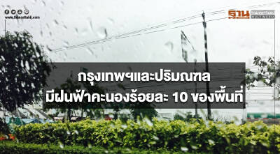 กรุงเทพมหานครและปริมณฑล อากาศร้อนในตอนกลางวัน โดยมีฝนฟ้าคะนอง ร้อยละ 10 ของพื้นที่