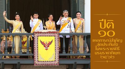 ปีติ ๑๐ เหตุการณ์สำคัญสุดประทับใจในพระราชพิธีบรมราชาภิเษก “พระบาทสมเด็จพระปรเมนทรรามาธิบดีศรีสินทรมหาวชิราลงกรณมหิศรภูมิพลราชวรางกูร กิติสิริสมบูรณอดุลยเดช สยามินทราธิเบศรราชวโรดม บรมนาถบพิตร พระวชิรเกล้าเจ้าอยู่หัว” พระมหากษัตริย์ไทยรัชกาลที่ ๑๐ แห่งราชวงศ์จักรี โดยในการพระราชพิธีบรมราชาภิเษกในช่วงวันที่ ๔-๖ พฤษภาคม ๒๕๖๒ ที่ผ่านมา นอกจากห่างหายจากพระราชพิธีครั้งก่อนกว่า ๖๙ ปี ได้มีเรื่องราวสำคัญหลากหลายเหตุการณ์ที่ถือเป็นหน้าประวัติศาสตร์ใหม่ของชาติไทย ควรค่าแก่การบันทึกและเรียนรู้เพื่อร่วมกันสืบสานโบราณราชประเพณีอันงดงามนี้ให้คงอยู่สืบไป ทางทีมงานจึงขอพระราชทานพระบรมราชานุญาตรวบรวม ๑๐ เหตุการณ์สำคัญในพระราชพิธีบรมราชาภิเษก ๒๕๖๒