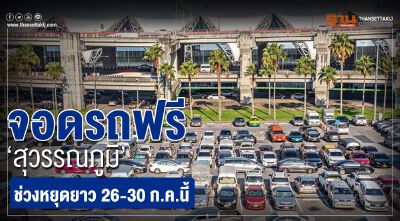 สนามบินสุวรรณภูมิยกเว้นค่าบริการจอดรถที่ลานจอดรถระยะยาวในช่วงวันหยุดยาวระหว่างวันที่ 26 - 30 กรกฎาคม นี้ พร้อมจัดแชตเตอร์บัสรับ-ส่งฟรี