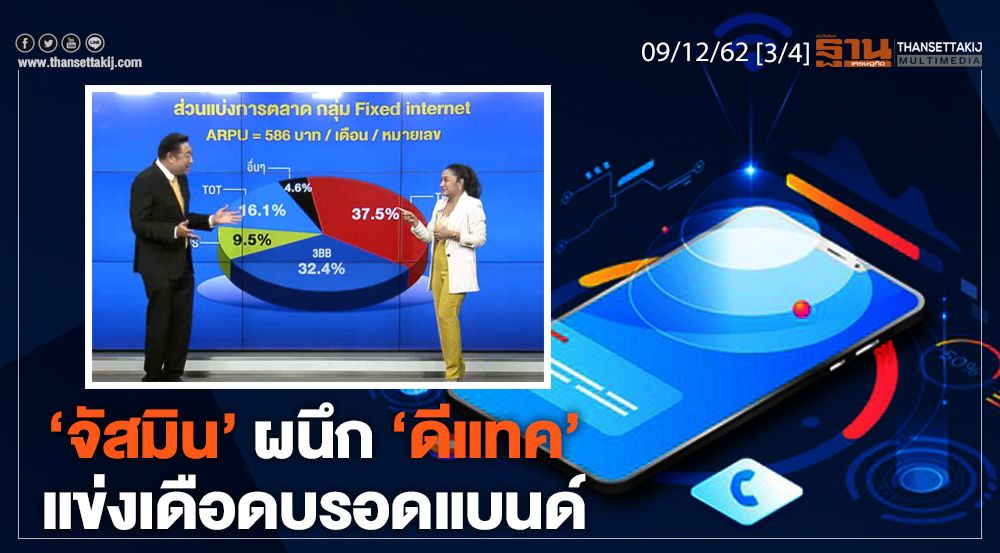 NEWSROOM ห้องข่าวเศรษฐกิจ 09/12/62 ทุกวันจันทร์-ศุกร์ เวลา 10.30-11.50 น. เจาะลึกประเด็น ‘จัสมิน’ ผนึก ‘ดีแทค’ แข่งเดือดบรอดแบนด์ เป็นอย่างไรติดตามได้จากรายการ