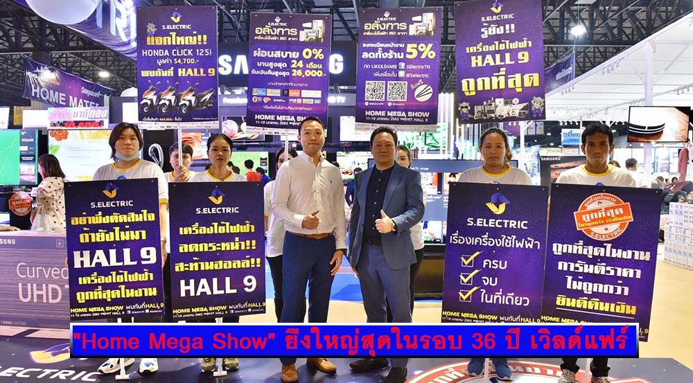 " Home Mega Show" งานแสดงและขายสินค้าเกี่ยวกับบ้านและที่อยู่อาศัยครบวงจร โดยบริษัท เวิลด์ แฟร์ จำกัด เริ่มขึ้นแล้ว ภายใต้คอนเซปต์ "เรื่องบ้าน ครบ จบ ในงานเดียว"มุ่งให้เป็นงานคืนกำไรและมอบประโยชน์สูงสุดแก่ผู้บริโภค ระหว่างวันที่ 11-19 มกราคม 2563 ณ อาคาร 5-12 อิมแพ็คเมืองทองธานี โดยมีบริษัท ส.แสงกรุ๊ป จำกัด หรือ S.Electric บริษัทตัวแทนจำหน่ายเครื่องใช้ไฟฟ้าอันดับ 1ในประเภทร้านค้าปลีก นำสินค้าคุณภาพมาลดราคาเป็นพิเศษ ลดสูงสุดเท่าที่เคยทำมาเพื่องานนี้โดยเฉพาะ ดร.ภาณุพันธุ์ จิตศักดานนท์ ผู้ช่วยกรรมการผู้จัดการ บริษัท เวิลด์ แฟร์ จำกัด ผู้จัดงาน