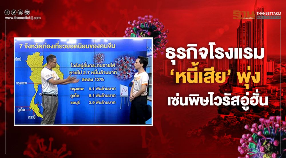 NEWSROOM ห้องข่าวเศรษฐกิจ 11/02/63 ทุกวันจันทร์-ศุกร์ เวลา 10.30-11.50 น. เจาะลึกประเด็น ธุรกิจโรงแรม “หนี้เสีย” พุ่ง เซ่นพิษไวรัสอู่ฮั่นเป็นอย่างไรติดตามได้จากรายการ
