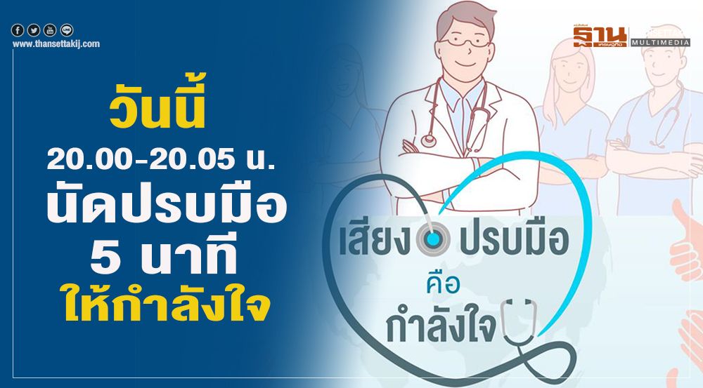วันนี้ (29 มี.ค.63) เวลา 20.00-20.05 น. นัดปรบมือ 5 นาที ที่ระเบียงบ้าน หน้าบ้าน ในบ้าน หรือจากที่ไหนก็ได้ เพื่อขอบคุณและให้กำลังใจบุคลากรทางการแพทย์ ที่เสียสละดูแลผู้ป่วยติดเชื้อโควิด-19