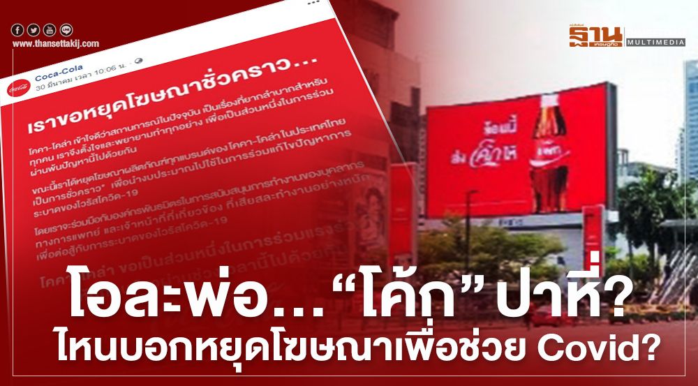 ขณะนี้เราหยุดโฆษณาผลิตภัณฑ์ทุกแบรนด์ ของโคคา-โคล่า ในประเทศไทยเป็นการชั่วคราว เพื่อนำงบประมาณไปใช้ในการร่วมแก้ปัญหาการระบาดของโควิด-19 โดยเราจะร่วมมือกันองค์กรพันธมิตรในการสนับสนุนการทำงานของบุคลากรทางการแพทย์ และเจ้าหน้าที่ที่เกี่ยวข้อง ที่เสียสละทำงานอย่างหนักเพื่อต่อสู้กับการระบาดของไวรัสโควิด-19