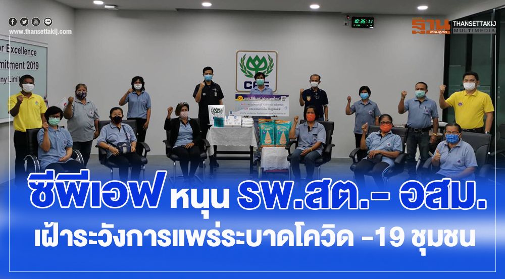จากสถานการณ์แพร่ระบาดของโควิด 19 นอกจากมาตรการเข้มงวดที่รัฐบาลและกระทรวงสาธารณสุขนำมาใช้เพื่อเป็นมาตรฐานเดียวกันแล้ว ในระดับชุมชนยังมีมาตรการเฝ้าระวัง ควบคุม และป้องกัน โดยการทำหน้าที่ของโรงพยาบาลส่งเสริมสุขภาพตำบล (รพ.สต.) และอาสาสมัครสาธารณสุขประจำหมู่บ้าน (อสม.) ซึ่งฟาร์มและโรงงานของซีพีเอฟที่ตั้งในพื้นที่ต่างๆ ทั่วประเทศ ร่วมดูแลความปลอดภัยในชุมชนด้วยการสนับสนุนอุปกรณ์การทำงาน