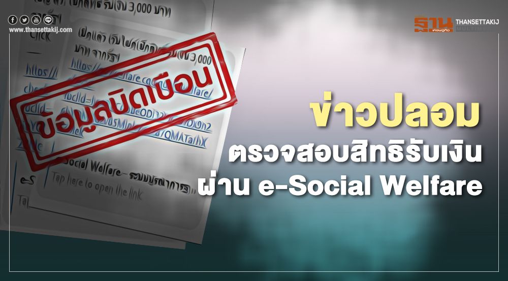 ทั้งนี้ ตามที่มีการแชร์ข้อมูลใน Social Media เกี่ยวกับการเชิญชวนประชาชนให้มาตรวจสอบสิทธิรับเงิน 3,000 บาท จากรัฐบาล ผ่านระบบบูรณาการฐานข้อมูลสวัสดิการสังคม หรือ e-Social Welfare ของกรมบัญชีกลางนั้น