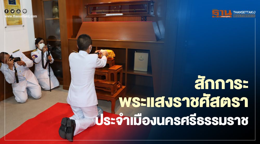 วันนี้ (3 มิ.ย. 2563) นายศิริพัฒ พัฒกุล ผู้ว่าราชการจังหวัดนครศรีธรรมราช พร้อมด้วย พล.ต.ต.สนธิชัย อาวัฒนกุลเทพ ผู้บังคับการตำรวจภูธรจังหวัดนครศรีธรรมราช และรองผู้ว่าราชการจังหวัดนครศรีธรรมราช ถวายมาลัยสักการะพระแสงราชศัสตราประจำเมืองนครศรีธรรมราช ซึ่งประดิษฐาน ณ ศาลากลางจังหวัดนครศรีธรรมราช เพื่อความเป็นสิริมงคล