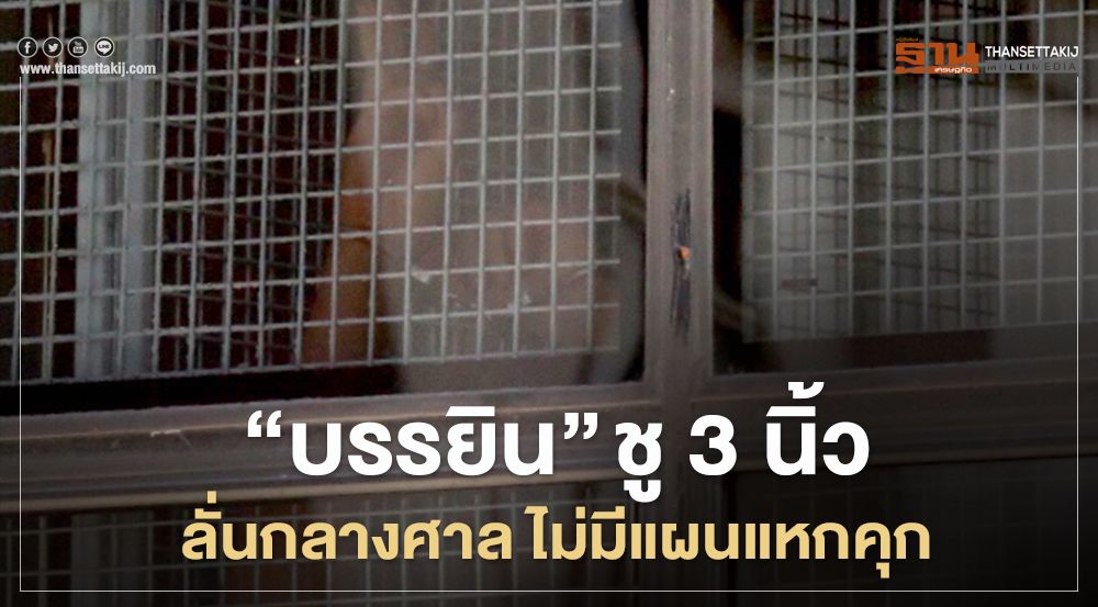 อย่างไรก็ตามขณะที่มีการถ่ายทอดสด พ.ต.ท.บรรยิน ซึ่งยืนอยู่ในตำแหน่งไม่ไกลจากกล้องมากนัก ได้กล่าวปฎิเสธกลางห้องพิจารณาคดีว่าไม่ได้วางแผนแหกคุก และบอกว่าเครียดจนต้องผูกคอตายในห้องขัง และภายหลังการพิจารณาคดีเสร็จสิ้น พ.ต.ท.บรรยิน ได้ชูสัญลักษณ์ 3 นิ้ว ขณะที่อยู่บนรถผู้ต้องขังเรือนพิเศษ ขณะที่รถกำลังเคลื่อนออกจากศาลผ่านสื่อมวลชน