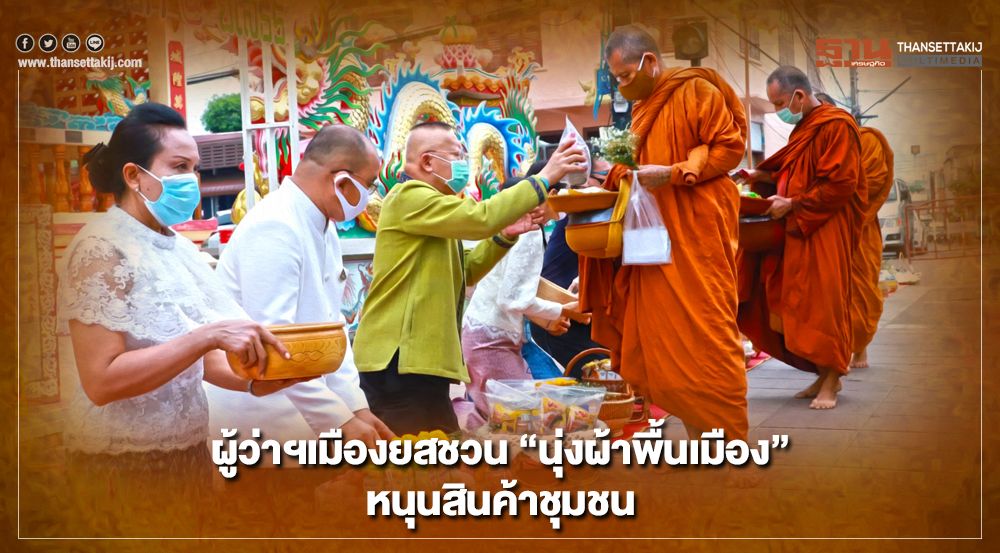 นุ่งผ้าพื้นเมือง หนุนเศรษฐกิจชุมชน ผู้ว่าฯยโสธร พร้อม 2 รองผู้ว่าฯ ชวนชาวจังหวัดยโสธร สวมใส่ผ้าไทยผ้าพื้นเมืองทุกวันอังคารและศุกร์ หรือร่วมงานบุญตามประเพณี เพื่อสืบสานวัฒนธรรม และอุดหนุนสินค้าโอทอป สร้างรายได้แก่ชุมชน