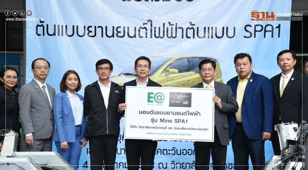 นายสมโภชน์ อาหุนัย ประธานเจ้าหน้าที่บริหาร บริษัท พลังงานบริสุทธิ์ จำกัด (มหาชน) (EA) เปิดเผยว่า บริษัท ก้าวเข้าสู่ธุรกิจที่ใช้เทคโนโลยีขั้นสูง ด้วยการลงทุนในอุตสาหกรรมผลิตแบตเตอรี่ลิเทียมไอออน ยานยนต์ไฟฟ้า และธุรกิจที่เกี่ยวเนื่อง โดยมีฐานการผลิตที่สำคัญอยู่ในจังหวัดฉะเชิงเทรา จึงเล็งเห็นถึงความสำคัญในการให้ความร่วมมือกับกลุ่มสถาบันการศึกษาเพื่อมอบแพลทฟอร์มต้นแบบ รถยนต์ไฟฟ้า MINE SPA1 ซึ่งเป็นนวัตกรรมยานยนต์ไฟฟ้ารุ่นแรกที่เป็นความภาคภูมิใจของ กลุ่ม EA หรือเรียกอีกชื่อว่า MINE ถือเป็นยานยนต์ไฟฟ้าที่ออกแบบและสร้างโดยทีมงานคนไทยเพื่อคนไทยอย่างแท้จริง