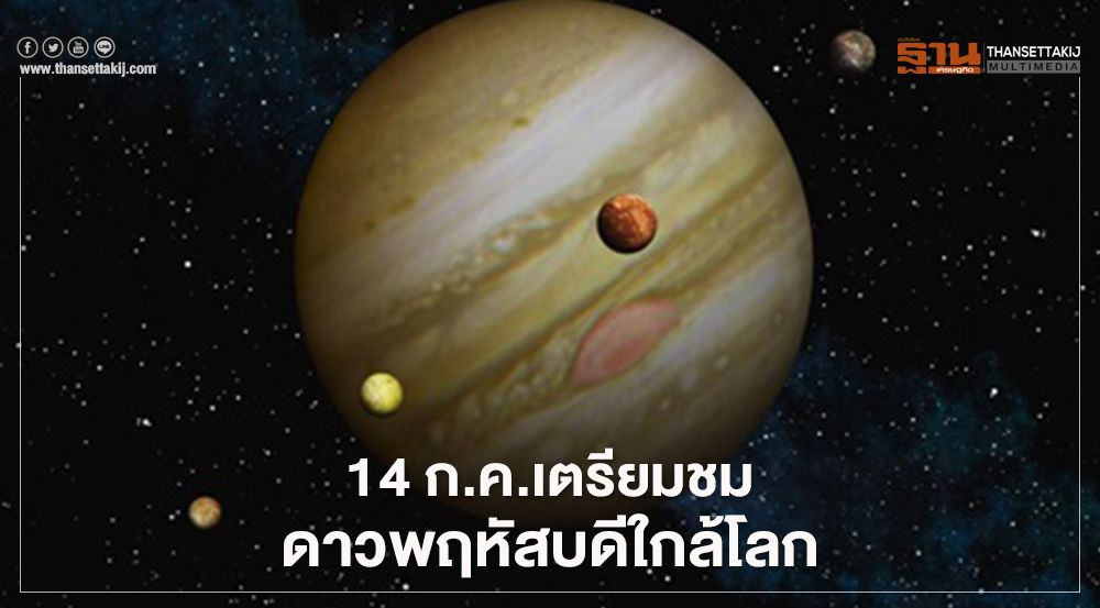14 กรกฎาคม 2563 NARIT ชวนชม “ดาวพฤหัสบดีใกล้โลกที่สุดในรอบปี” ปรากฏสว่างเด่นชัด ทางทิศตะวันออกเฉียงใต้ นานตลอดคืนถึงรุ่งเช้า หากท้องฟ้าใสไร้เมฆฝนสังเกตได้ด้วยตาเปล่าทั่วไทย