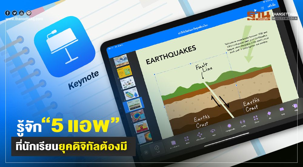4. Keynote (ฟรี) แอพทำ Presentation ที่มีลูกเล่นให้ใช้หลากหลายมาก เช่น แอนิเมชั่นจากลายมือของเราแล้วแปะลงไปในสไลด์ ซึ่งวิธีการใช้ก็ไม่ยุ่งยากอย่างที่คิด