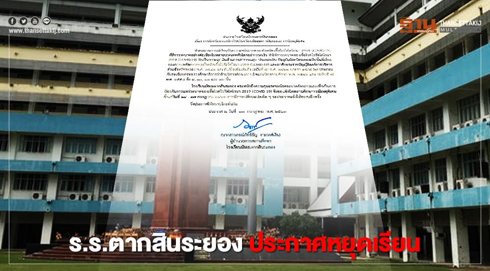 โดยทางโรงเรียนมัธยมตากสินระยองมีความตระหนัก และเฝ้าระวังการแพร่ระบาด "จึงขอประกาศหยุดเรียน" ตั้งแต่วันอังคาร ที่ 14 - 17 ก.ค. 63 และเปิดเรียนอีกครั้งในวันจันทร์ที่ 20 ก.ค. 63