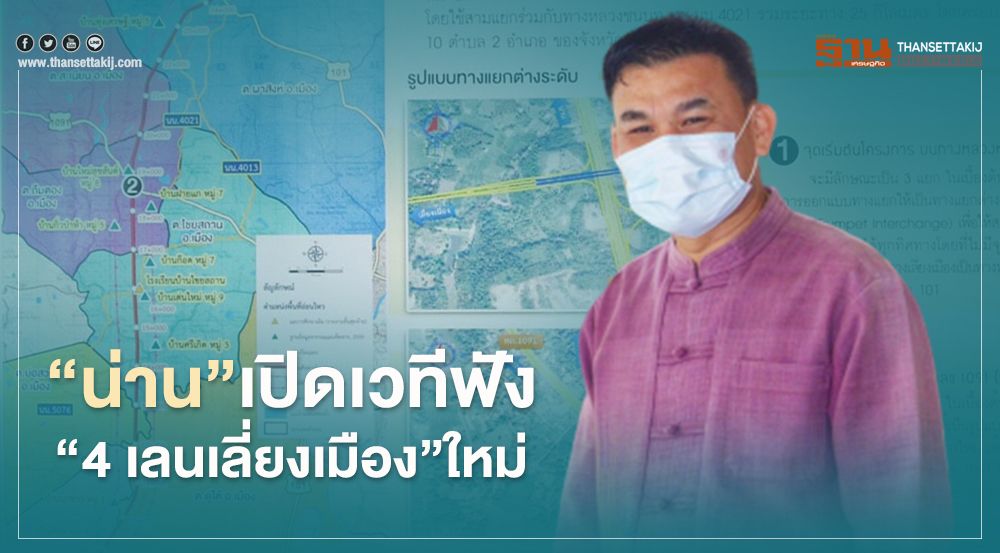 "4เลนเลี่ยงเมืองน่าน"คืบ จัดเวทีครั้งที่ 1 เปิดรับฟังความคิดเห็นทุกภาคส่วนที่เกี่ยวข้อง โครงการสำรวจและออกแบบทางหลวง 4 ช่องทางจราจร ทางเลี่ยงเมืองน่าน ระยะทาง 25 กิโลเมตร ที่โรงแรมดิอิมเพลสน่าน