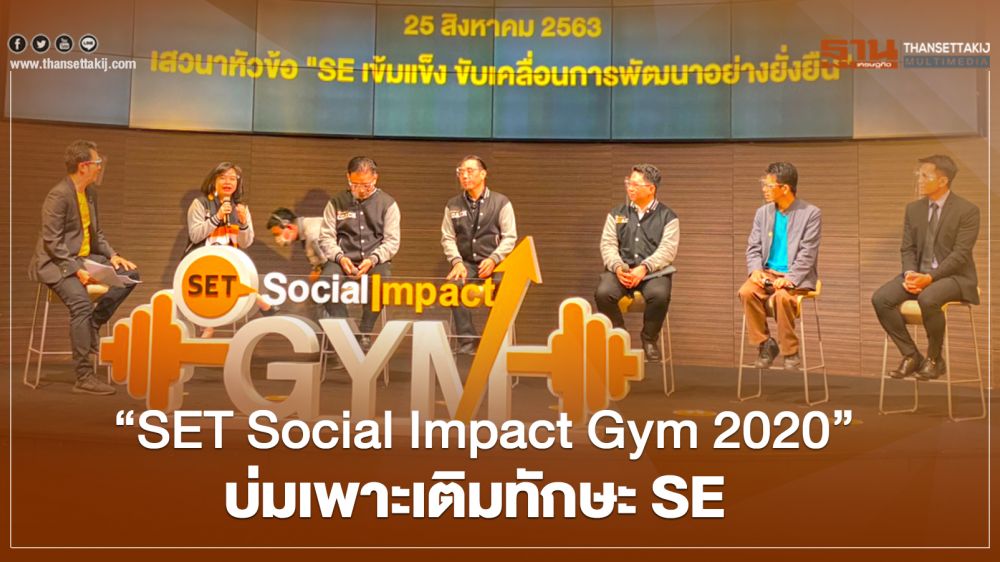โครงการ SET Social Impact Gym 2020 เป็นเวิร์กชอปเข้มข้นพัฒนาศักยภาพ SE แบบตัวต่อตัวใน 5 ขั้นตอนประกอบด้วย 1) Business Warm Up: Social Impact Creation 2) Burn Fat: How to Super Lean 3) Body Fit & Firm: Decision Making & Growth Mindset 4) Build Muscle: Leadership of the Next Betterment และ 5) Six Pack Day : Speech Day โดย SE ที่เข้าร่วมจะต้องผ่านหลักสูตรอบรมเชิงปฏิบัติการ SE102 เพื่อให้เข้าใจทั้งเชิงทฤษฎีและการปฏิบัติจริง ตลอด 3 ปีที่ผ่านมา SET Social Impact Gym ได้พัฒนาศักยภาพ SE แล้ว 46 ราย และสามารถต่อยอดร่วมกับภาคธุรกิจและหน่วยงานเอกชนแล้วกว่า 200 โครงการ ทั้งนี้ SE ที่สนใจพัฒนาศักยภาพ ดูรายละเอียดได้ที่www.setsocialimpact.com