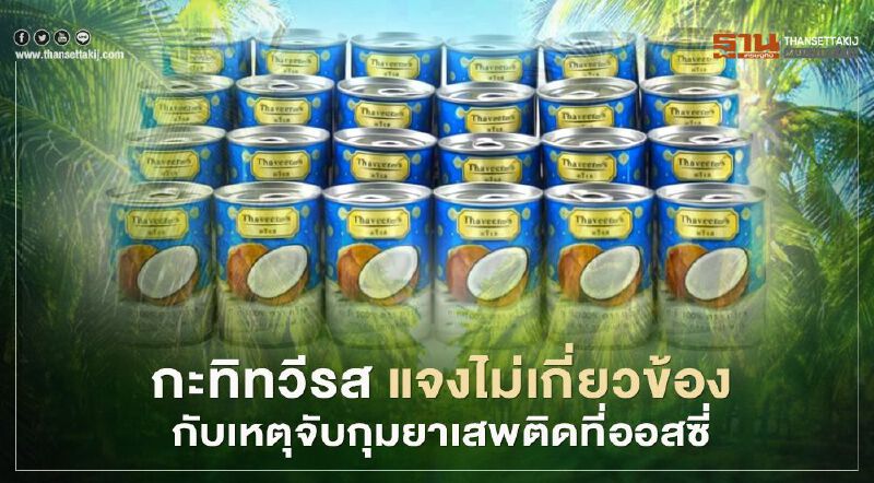 กะทิทวีรส ออกแถลงการณ์ยืนยันว่า ไม่ได้มีส่วนเกี่ยวข้องกับเหตุการณ์ตำรวจออสซี่จับยาเสพติดในกระป๋องกะทิจำนวน 600 ลิตร