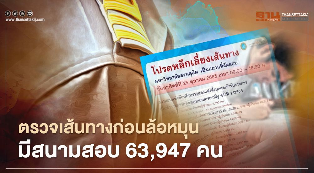 วันที่ 25 ต.ค. 63 ตั้งแต่เวลา 09.00 - 16.30 น. มีการสอบแข่งขันเพื่อบรรจุและแต่งตั้งบุคคลเข้ารับราชการ เป็นข้าราชการกรุงเทพมหานครสามัญฯ จำนวนผู้เข้าสอบรวม 63,947 คน