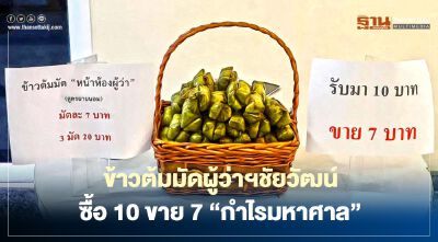 "ผู้ว่าฯชัยวัฒน์" ตั้งโต๊ะหน้าห้องผู้ว่าฯปทุมธานี ขายข้าวต้มมัด "ซื้อ10ขาย7" ยันกำไรมหาศาล โลกออนไลน์แห่ชื่่นชม สุดยอดกุศโลบายนักปกครอง สร้างขวัญกำลังใจคนรอบข้าง แถมปลุกกระแส"ผู้ให้"