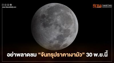 อย่าพลาดชมปรากฏการณ์ "จันทรุปราคาเงามัว " 30 พ.ย.นี้ ดูได้ตั้งแต่ดวงจันทร์ขึ้นจากขอบฟ้าไปจนถึงเวลา 18:53 น.