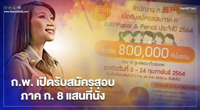 หลังจากสํานักงาน ก.พ. ได้เปิดรับสมัครสอบ ก.พ. เพื่อวัดความรู้ความสามารถทั่วไป (ภาค ก)  ประจําปี 2564 แบบ Paper & Pencil จำนวน 8 แสนที่นั่งสอบ และเริ่มเปิดให้สมัครผ่าน   http://job2.ocsc.go.th ตั้งแต่เที่ยงคืนของวันที่ 2 ก.พ. 2564 (เวลา 00.00 น. ) ไปจนถึงวันที่ 24 ก.พ. 2564