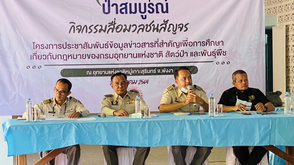 วันที่ 26 มีค.2564 ที่ศาลาประชาคม อ.คุระบุรี จ.พังงา กรมอุทยานแห่งชาติ สัตว์ป่าและพันธุ์พืช กระทรวงทรัพยากรธรรมชาติและสิ่งแวดล้อม (ทส.) จัดเวทีเสวนาสื่อสัญจร ครั้งที่ 4 ภายใต้โครงการการประชาสัมพันธ์ข้อมูลข่าวสารที่สำคัญเพื่อการศึกษาเกี่ยวกับกฎหมายของกรมอุทยานแห่งชาติฯ เพื่อสร้างการรับรู้กฎหมายฉบับใหม่ของกรมอุทยานแห่งชาติฯ
