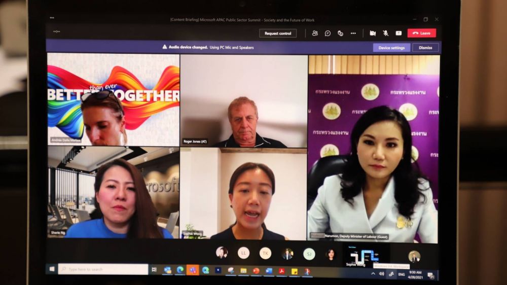 วันที่ 28 เมษายน 2564 ศาสตราจารย์ นฤมล ภิญโญสินวัฒน์ รัฐมนตรีช่วยว่าการกระทรวงแรงงาน เปิดเผยว่า บริษัท ไมโครซอฟท์ (ประเทศไทย) จำกัด มีกำหนดจัดงาน Microsoft APAC Public Sector Digital Summit-Empowering nations for a digital society ขึ้นในวันที่ 7 พฤษภาคม 2564 โดยประชุมผ่านระบบ Microsoft Teams Live