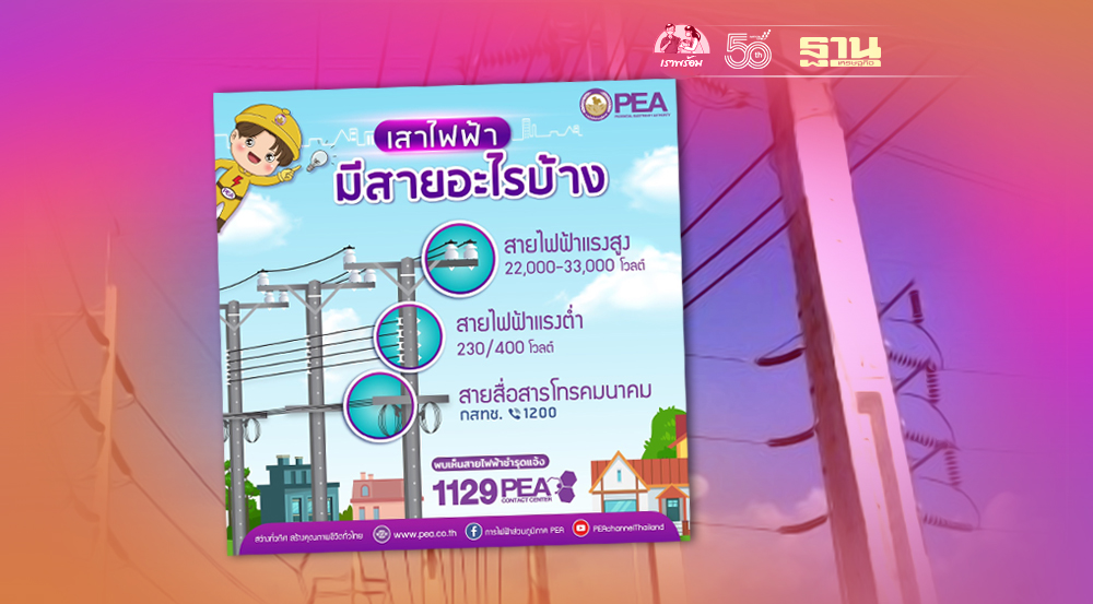การไฟฟ้าส่วนภูมิภาค (PEA) แนะนำสายต่างๆ ที่อยู่บนเสาไฟฟ้า มี 3 ชั้น ดังนี้
