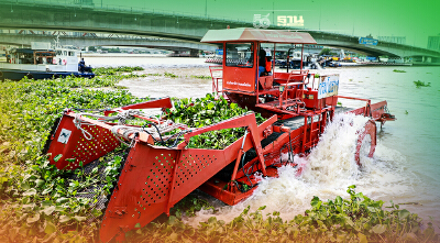 ส่งเรือเสริมกำลัง กทม. กำจัดผักตบชวาในแม่น้ำเจ้าพระยารับมือน้ำท่วม
